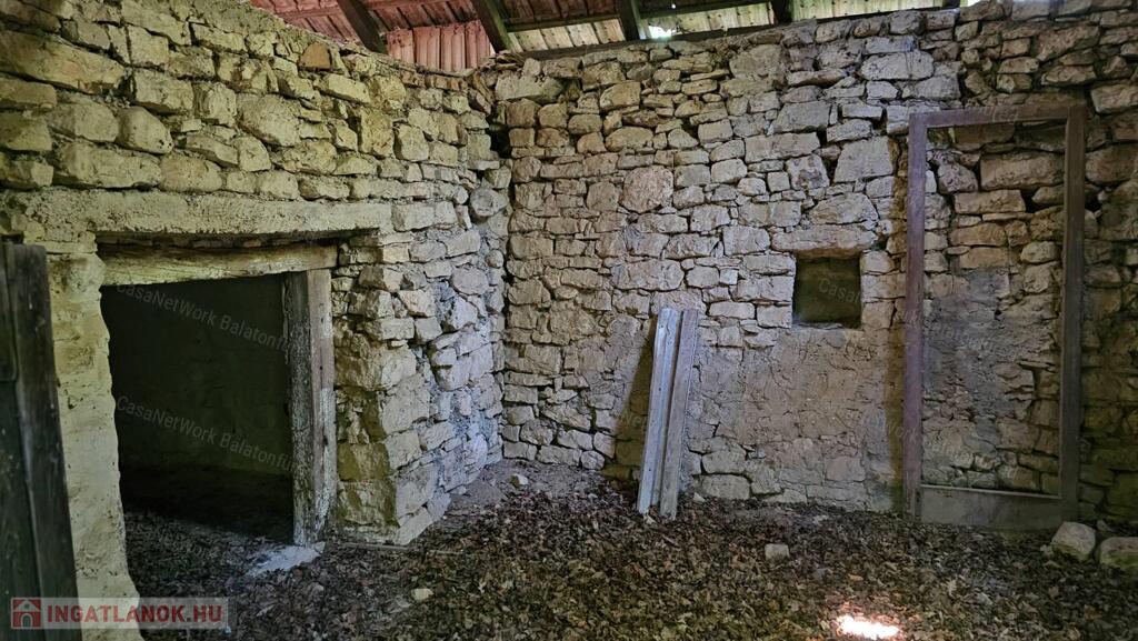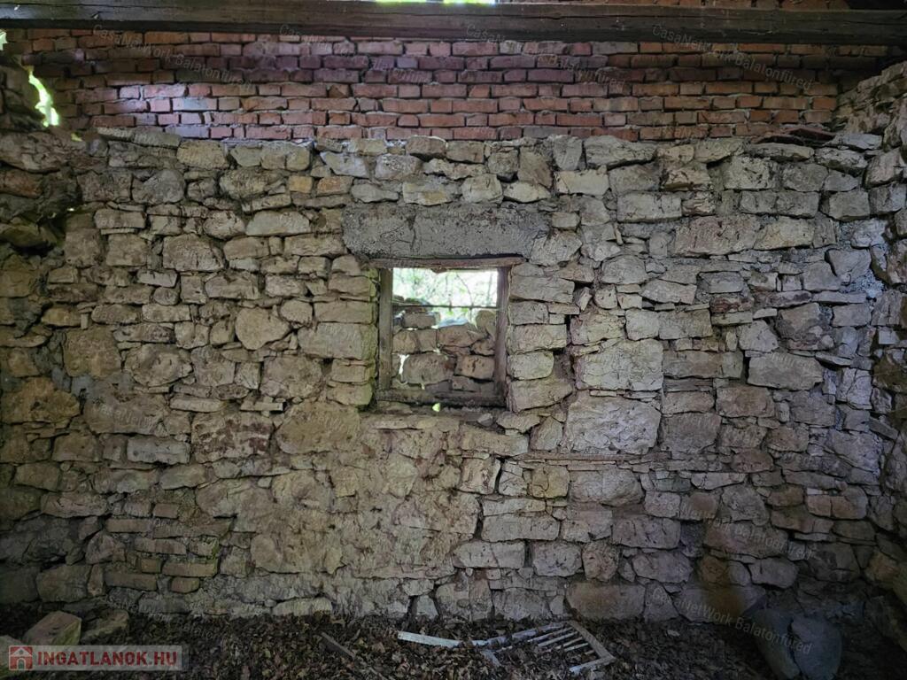 <p>A CASANETWORK BALATONALMÁDI Ingatlaniroda eladásra kínálja a 1938. referenciaszámú birtokát Vászolyban!</p><p>Eladó Balaton-felvidéken <strong>6,3 ha birtok </strong>2 db (cca 50 és 75 m2 bruttó alapterületű) romos épülettel, amelyek az ingatlan nyilvántartásban / térképen is fel vannak tüntetve. A teljes birtok 7 db helyrajzi számon található, melyek <strong>Má0</strong> övezeti besorolásúak. </p><p>A HÉSZ szerint:</p><p>„a) <strong>Má0: </strong>Általános mezőgazdasági terület övezetével érintett, de természetközeli élőhelyekkel borított, természetvédelmi célokat szolgáló, korábban erdőként szabályozott mezőgazdasági területek.</p><p>(5) Az <strong>Má0</strong> jelű övezetbe tartozó területeken új épület nem helyezhető el, a meglévő épület megtartható, felújítható, de nem bővíthető. Az övezetbe tartozó területeken a meglévő vegetációt és talajviszonyokat fenn kell tartani. „</p><p>A látványterv szerinti, <strong>érvényes építési engedéllyel</strong> rendelkező gazdasági épület tervei rendelkezésre állnak. Az épület <strong>földszinten és tetőtérben összesen nettó 139 m² hasznos alapterülettel</strong> került megtervezésre. A pinceszinten további <strong>nettó 70 m²</strong>-en borospince és raktárhelyiségek kaptak helyet, valamint egy <strong>63 m²-es, tágas terasz</strong> is kialakításra került a tervekben.</p><p>Közművek közül a villany a telken található.</p> <p>A területet az utóbbi évek során nem gondozták, ezért a vegetáció már elkezdte hatalmába keríteni a birtokot és a rajta található épületeket. Aki szereti a nyugalmat, a rejtőzködő környezetet, a természet közelségét, az emberek távolságát, annak mindenképpen pozitív élményt és kreatív lehetőségeket biztosíthat a terület jelenlegi állapota. </p><br />